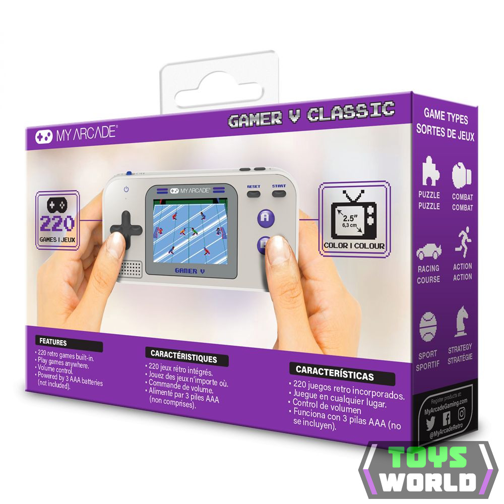 Szárnyalj az égbolton, fejts ki rejtvényeket, golfozzon vagy teniszezzen, és még sok más. A Gamer V 220 szórakoztató és könnyen játszható videojátékkal van feltöltve! Egyszerűen kapcsolja be a rendszert, és kezdjen el játszani bárhol, bármikor! A játékrendszer tökéletes otthon, az autóban, vagy szinte bárhol, ahol csak el tudod képzelni! Könnyen elfér a zsebében, pénztárcájában, táskájában vagy hátizsákjában! A Gamer V Classic segítségével játékai mindig kéznél lesznek!