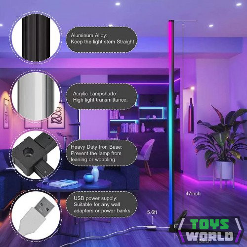 Led lámpatest , állólámpa , 125 cm , távirányítóval , DRGB , dimmelhető , USB , WIFI/Bluetooth , TUYA , LEDISSIMO AMBIENT LIGHT